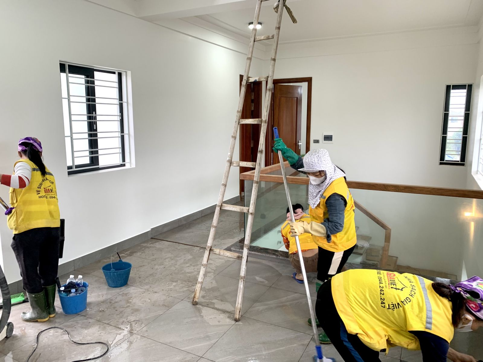 – Làm sạch sàn đá, đánh bóng các viền cửa, vách ngăn.